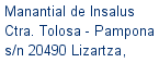 Insalus es una empresa de productos de consumo con 150 años de historia. Desde 1888 se envasa ininterrumpidamente el agua mineral natural en sus instalaciones de Lizartza. Primero fue el agua mineral con gas vendida en farmacias, pero de los años 60 del siglo pasado también se envasa el agua mineral natural sin gas.