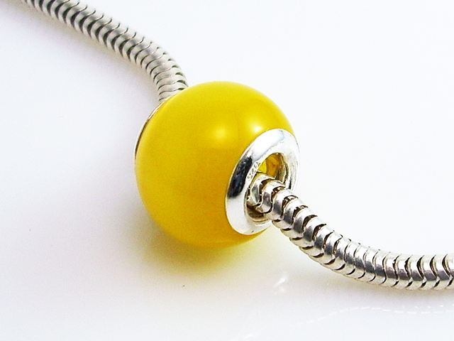Abalorio De Ojo De Gato Amarillo Y Plata De Ley