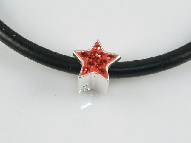 Abalorio Estrella Plata Y Cristal Rojo