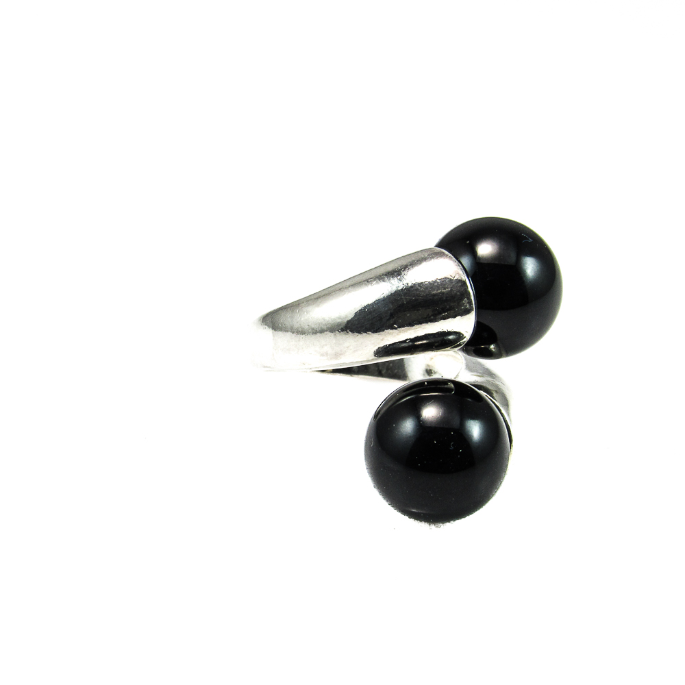 Anillo De Plata Con Bolas Negras De 12 Mm.