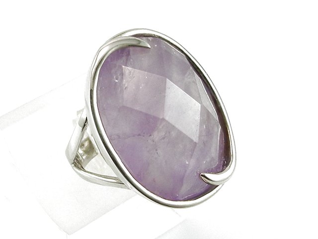 Anillo De Plata Rodiada Con Piedra De Cuarzo Facetada
