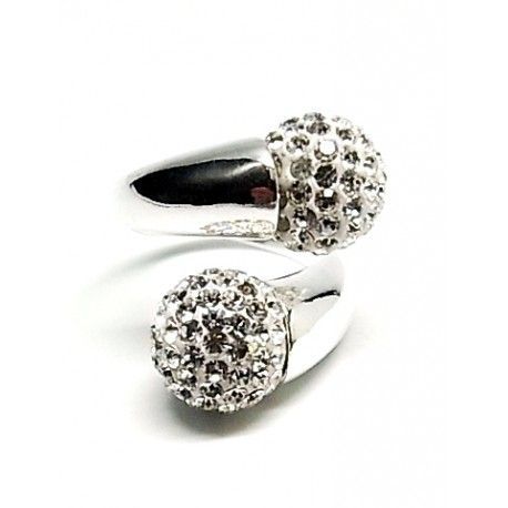 Anillo En Plata De Ley Con Bolas De Cristal Blancas