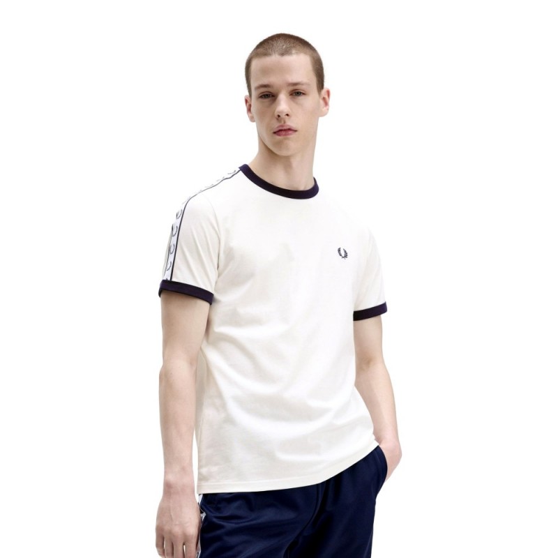 Camiseta fren ferry blanca franjas hombro bordado pecho