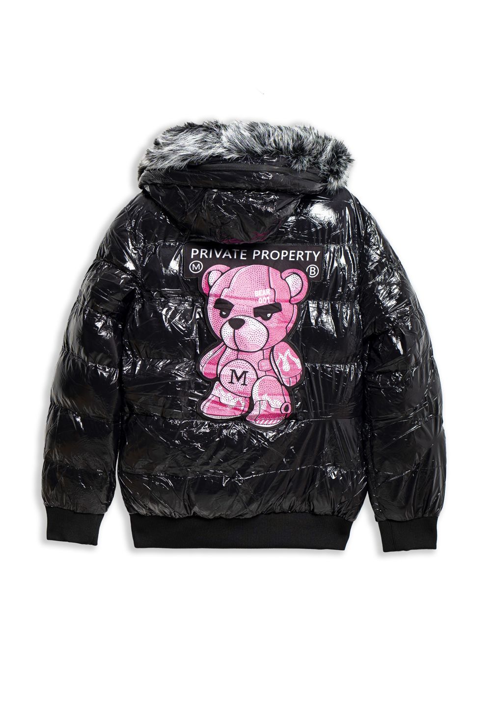 Cazadora area zero negra/rosa private property bear puffy jacket