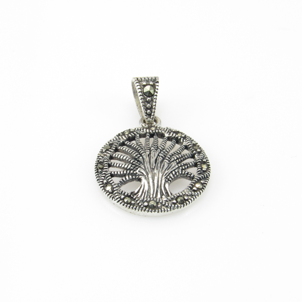 Colgante Árbol De La Vida En Plata De Ley Vieja Con Marcasitas