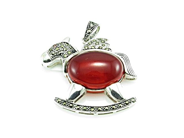 Colgante Caballo Alado De Plata Vieja Y Marquesitas