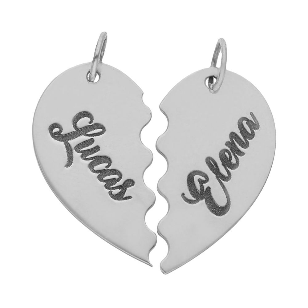Colgante Corazón Partido Personalizado Con Nombres De Plata