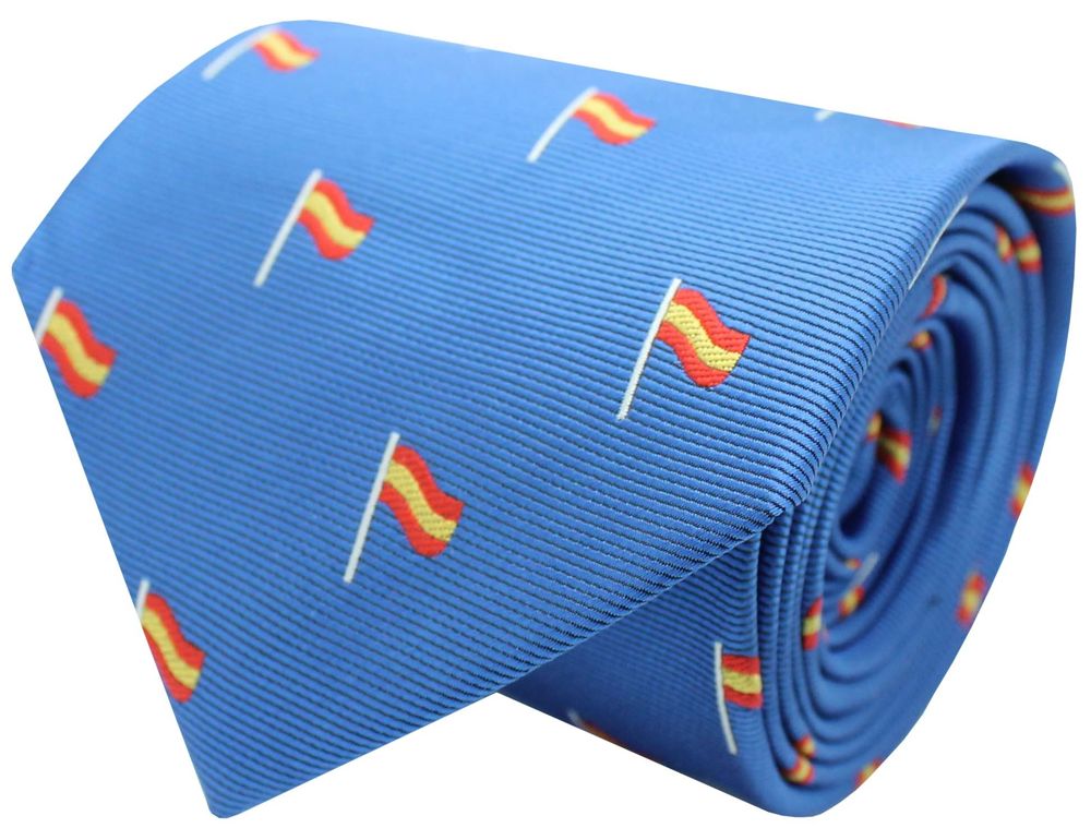 Corbata con bandera España mastil azul claro