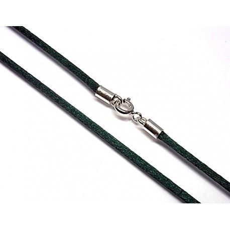Cordón De Seda Color Verde Botella Con Cierre De Plata De Ley