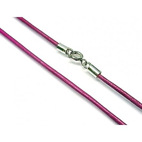 Cordon Fucsia De Piel Y Plata De Ley 40 Cm.