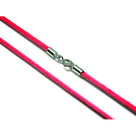 Cordon Fucsia De Seda Cierre Plata De Ley 40 Cm.