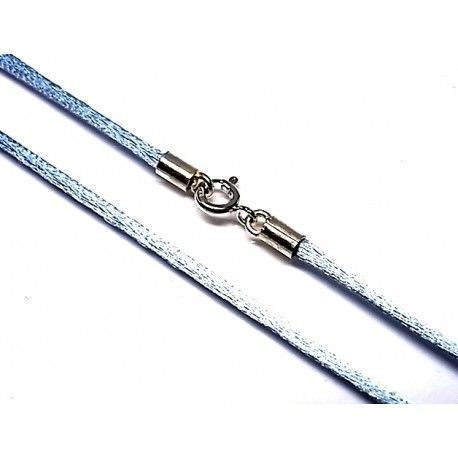 Cordón Seda Azul Cielo Con Cierre De Plata De Ley 40 Cm.