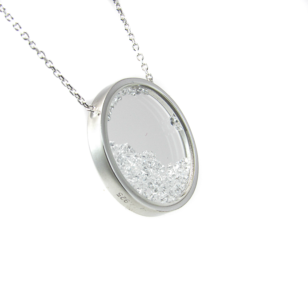 Gargantilla Círculo De Cristal Con Arena Transparente De Plata