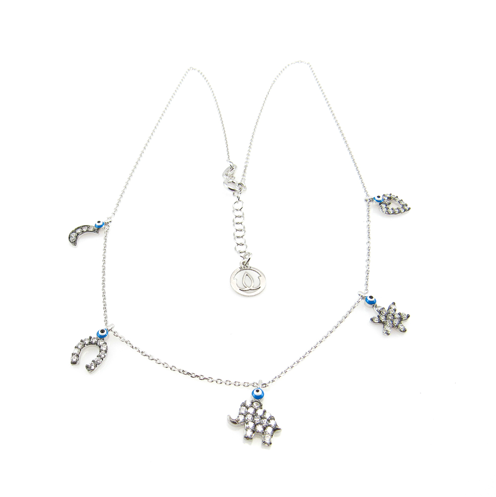 Gargantilla Con Amuletos De Plata Rodiada, Circonitas Y Esmalte