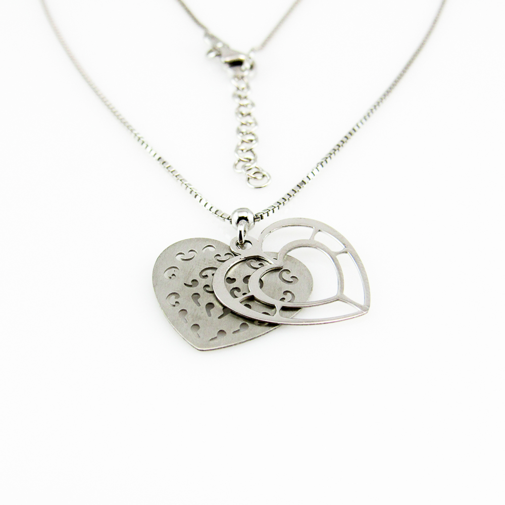 Gargantilla Corazón Doble De Plata De Ley Rodiada