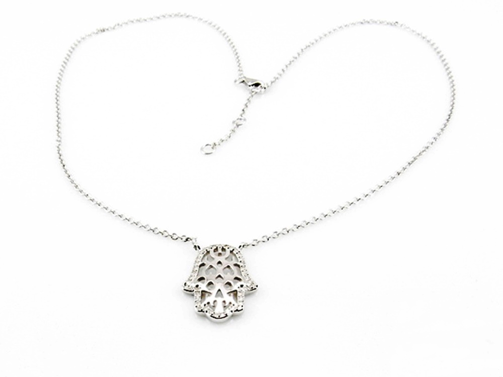 Gargantilla De Plata Rodiada Con Mano De Fátima