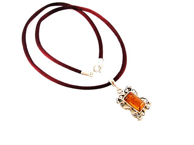 Gargantilla De Seda Con Colgante De Plata Y Ambar