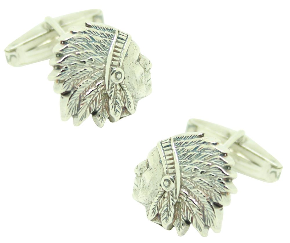 Gemelos para camisa American Indian Chief Plata de ley 925 PREMIUM