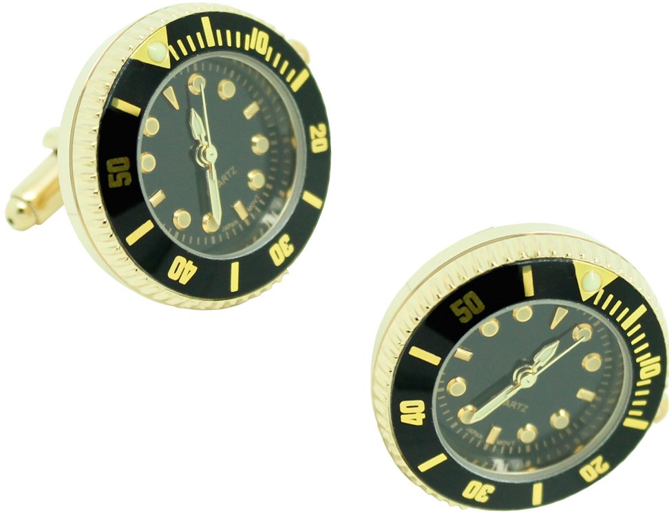 Gemelos para camisa Reloj Submariner Sport Negro - Dorado