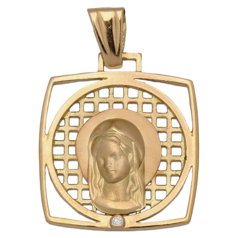 Medalla De Oro 18 Kl. Cuadrada Virgen Niña 20 X 23 Mm.