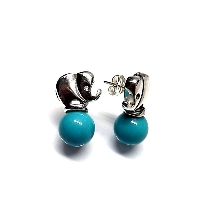 Pendientes Elefantes De Plata De Ley Con Bola Turquesa 10 Mm.