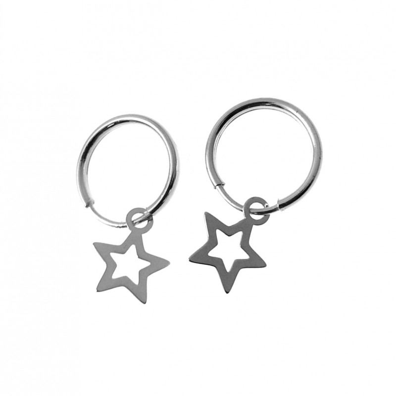 Pendientes Aros Mini 14 Mm Plata De Ley Con Estrella Colgante