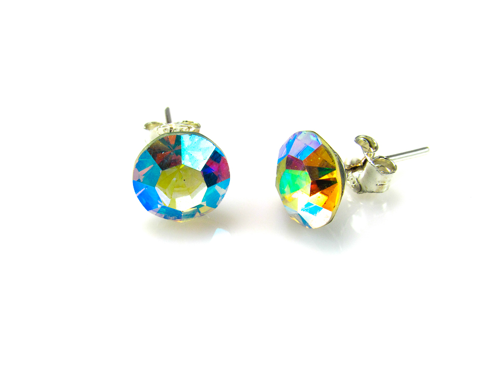Pendientes Cono De Plata Y Cristal Swarovski Aurora Boreal 8 Mm.