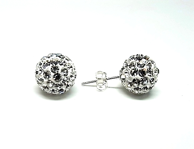Pendientes De Plata Y Cristal Blanco 10 Mm.