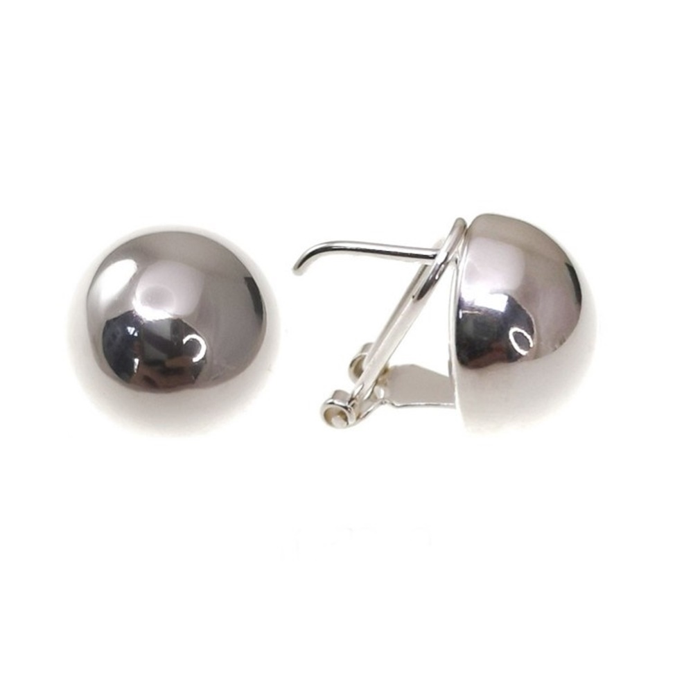 Pendientes En Plata De Ley Media Bola 16 Mm. Con Cierre Omega