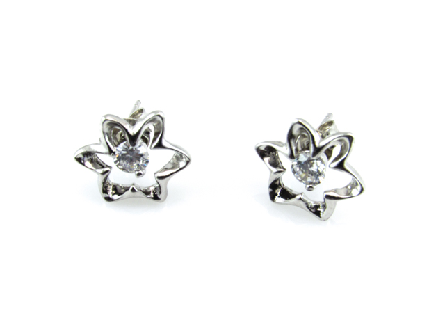 Pendientes Flores De Plata Rodiada Con Circonitas Blancas