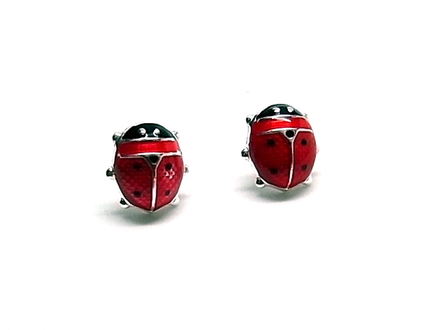 Pendientes Infantiles De Plata De Ley Con Mariquitas