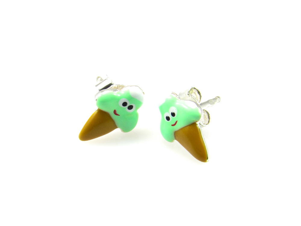 Pendientes Infantiles Helado Verde En Plata De Ley