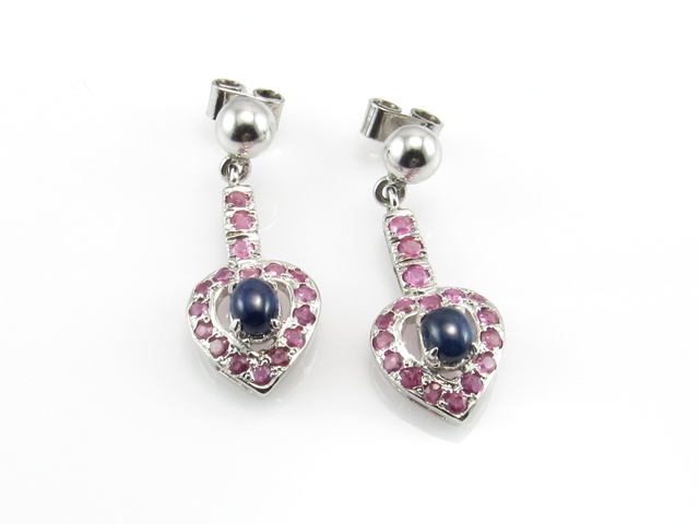 Pendientes Largos Corazón De Plata Y Piedras