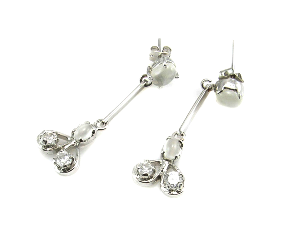 Pendientes Largos De Plata Rodiada Piedras Y Circonitas
