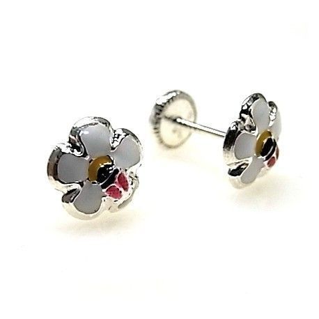 Pendientes Para Bebés Flor Y Mariquita De Plata De Ley