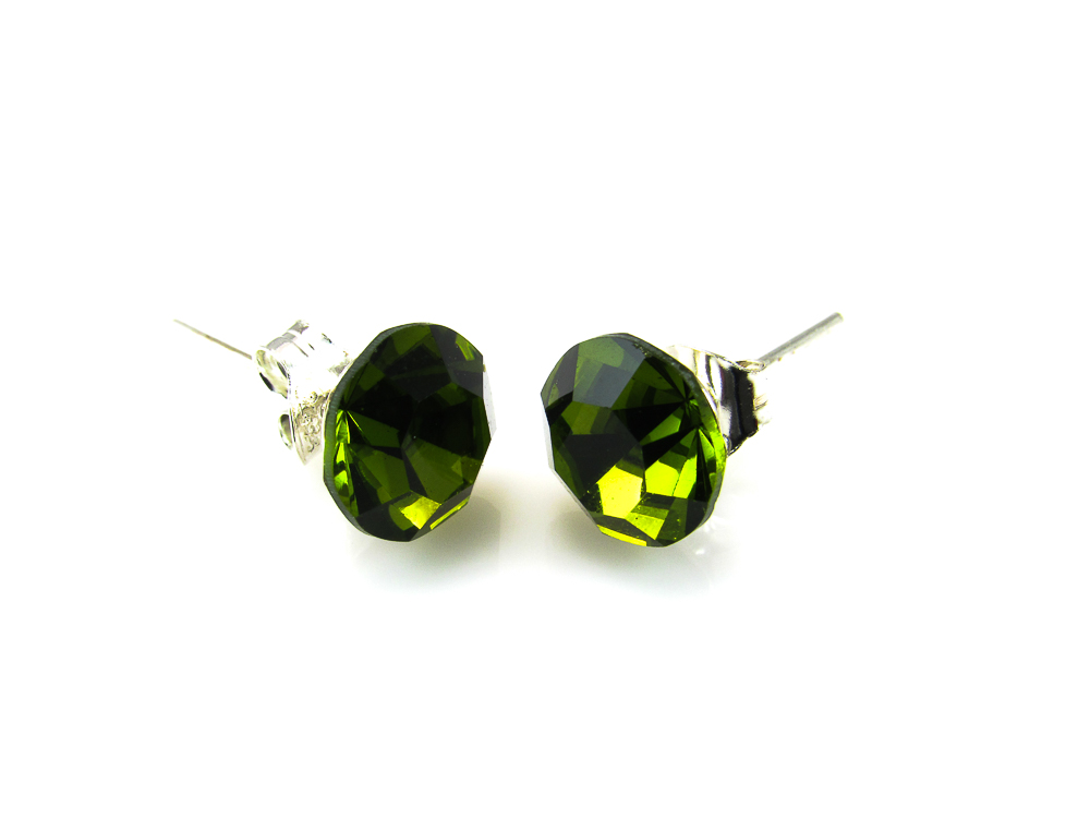 Pendientes Plata Y Cristal Swarovski Verde Oliva 8 Mm.