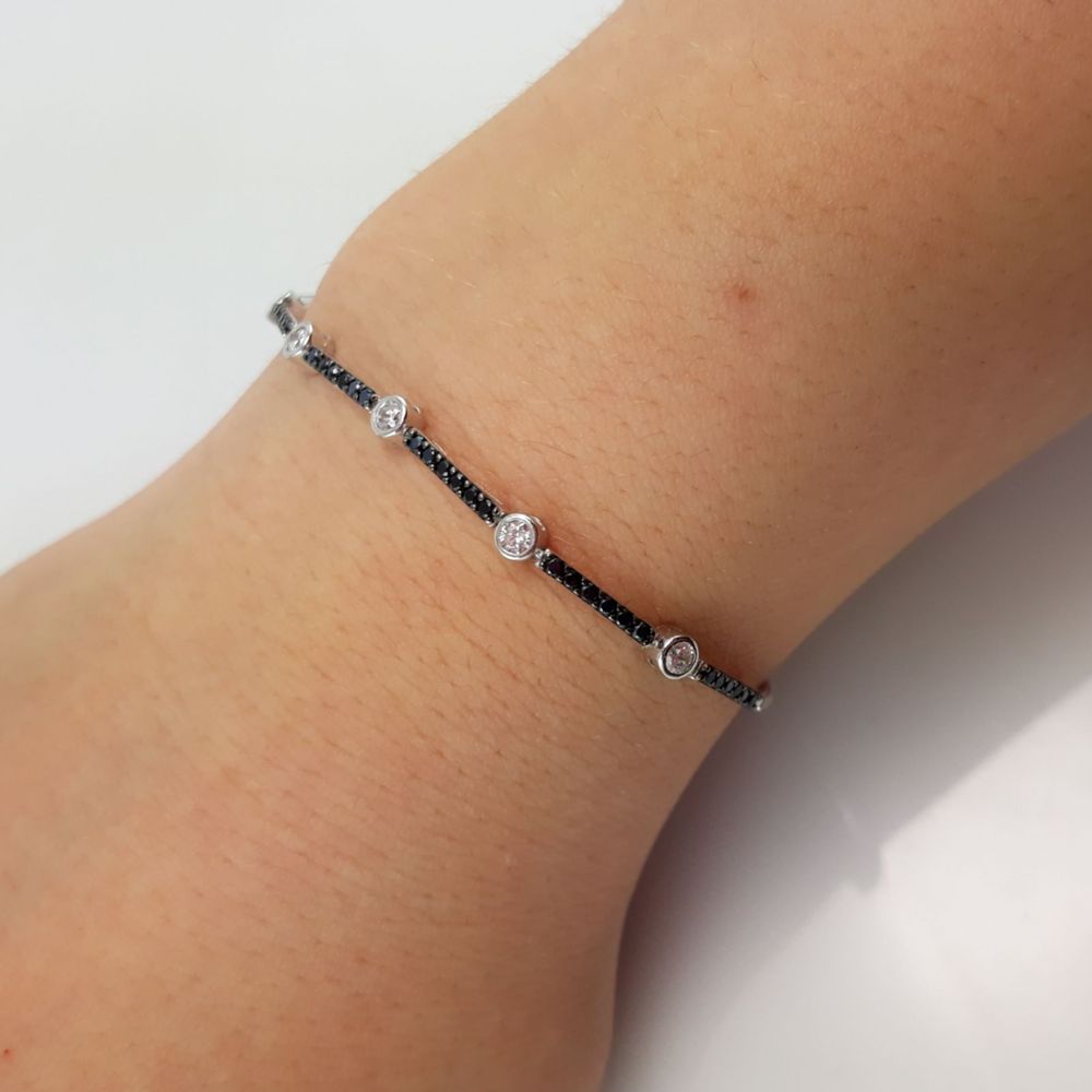 Pulsera Ajustable En Plata Rodiada Y Circonitas Blancas Y Negras