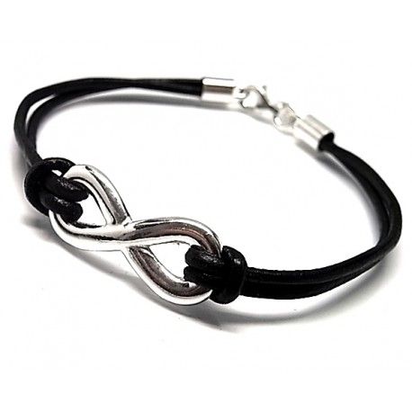 Pulsera De Cuero Con Símbolo Infinito De Plata De Ley