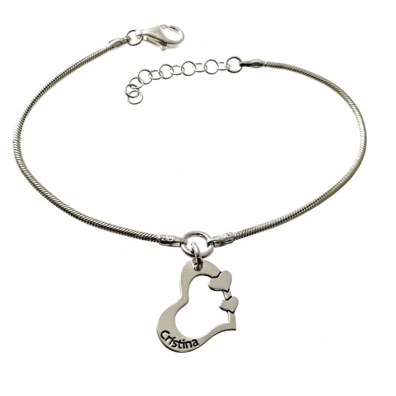 Pulsera De Plata Corazón Personalizado Con Cualquier Nombre