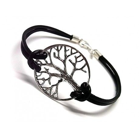 Pulsera De Plata Y Cuero Árbol De La Vida