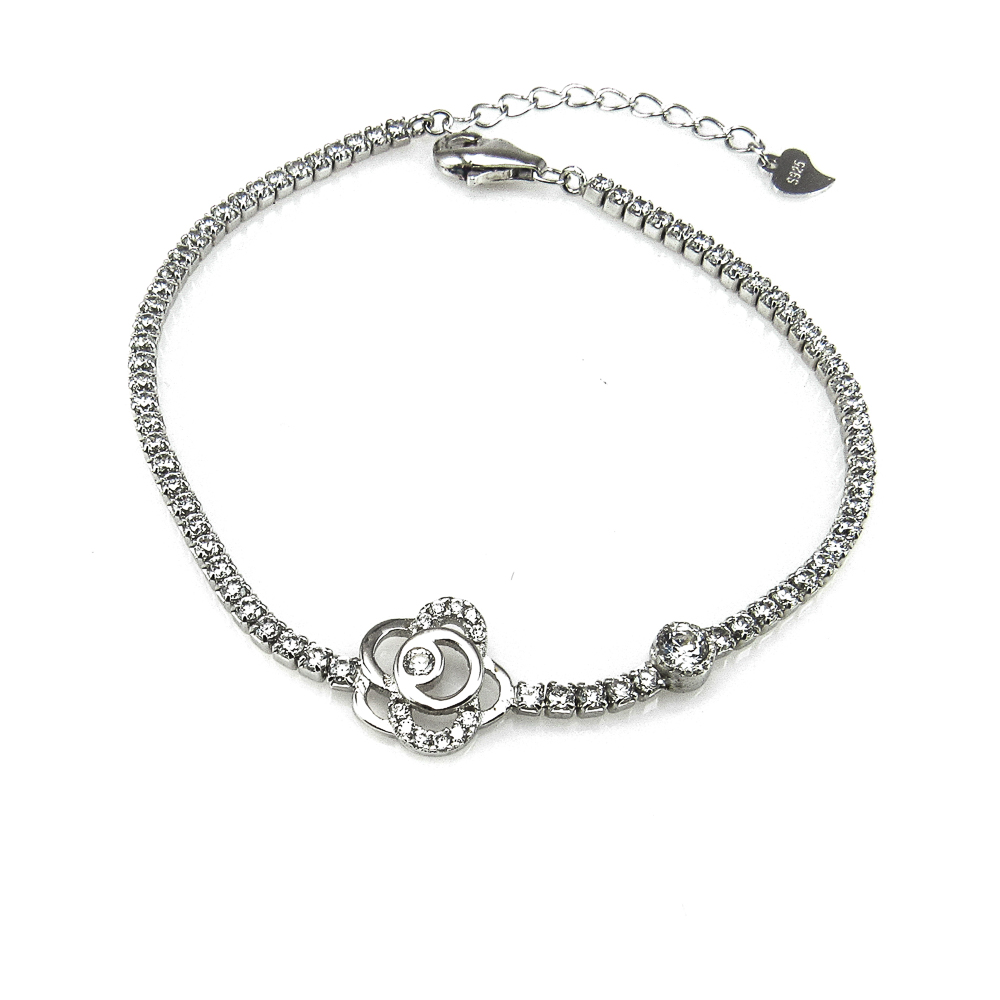 Pulsera Flor De Plata Rodiada Con Circonitas