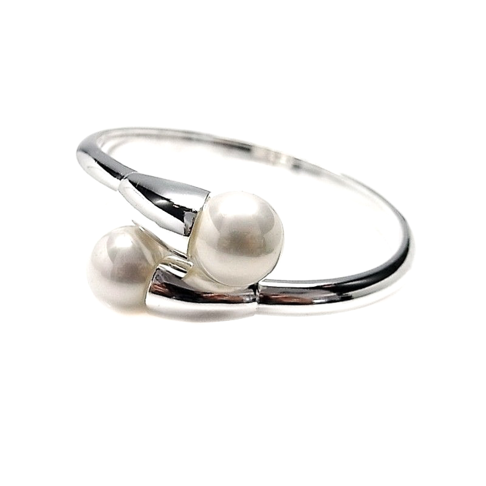 Pulsera Media Caña De Plata Con Perlas De 14 Mm.