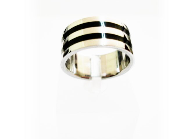 Sortija De Acero Doble Linea De Esmalte Negro